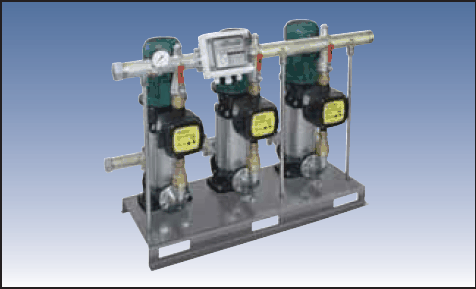 Τρίδυμα πιεστικά συγκροτήματα DAB που προορίζονται ειδικά για αστική ή βιομηχανική χρήση, αρδευτικά συστήματα και συστήματα πλύσης. Με τη χρήση των 3 κάθετα τοποθετημένων NKV 10 πολυβάθμιων ηλεκτρικών αντλιών. Εξοπλισμένα με  ένα Active Driver στην κατάθλιψη κάθε αντλίας και μία μονάδα ελέγχου προστασίας. Διατίθενται με γαλβανιζέ βάση, κολλεκτέρ και διαφορα εξαρτήματα η κατόπιν ζήτησης με ανοξείδωτα.